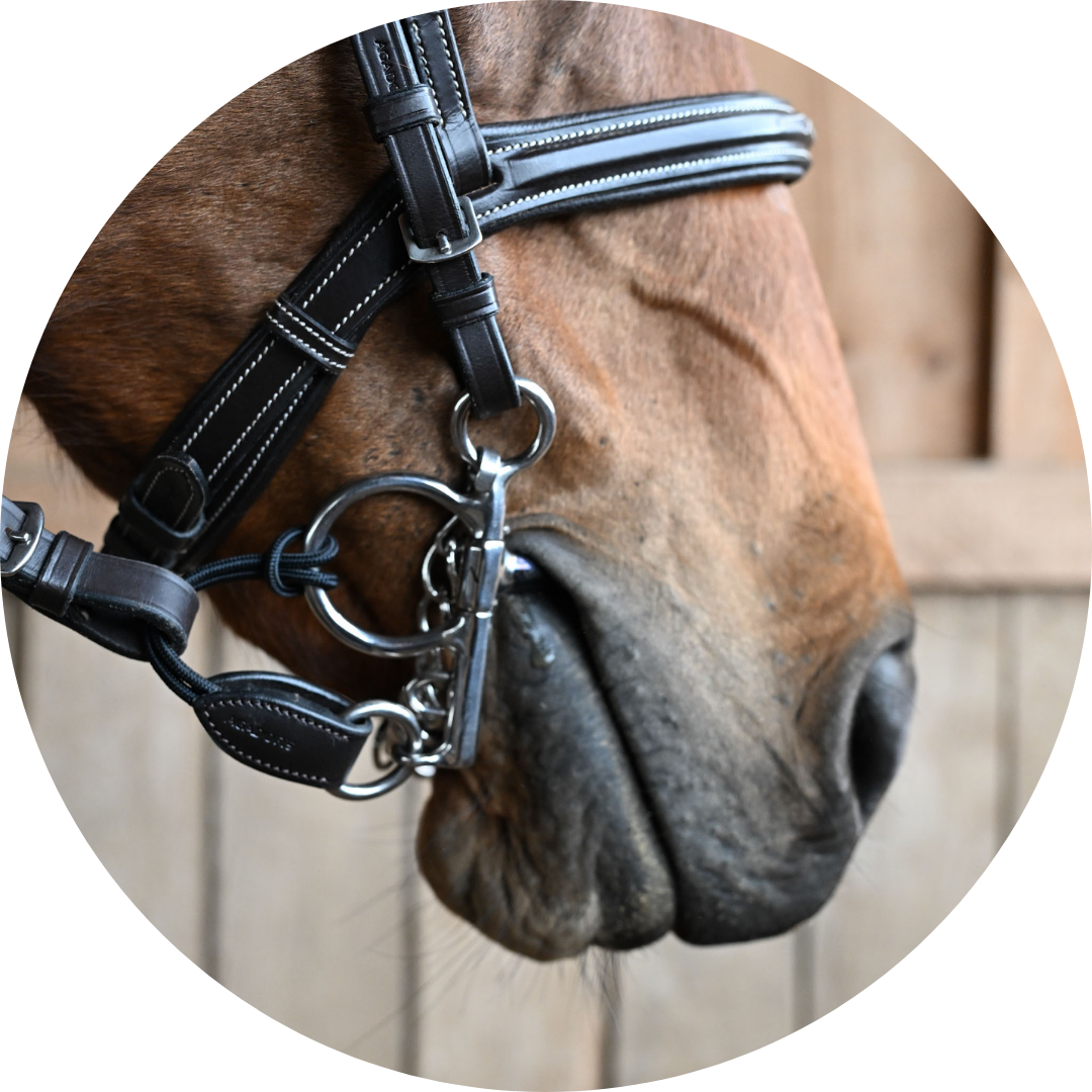 Pelham combines the action of the double bridle into a single bit amplifying the action of the mouthpiece and providing additional pressure and lift. It offers a high degree of precision and control by exerting pressure on the lips, the chin and somewhat on the poll.