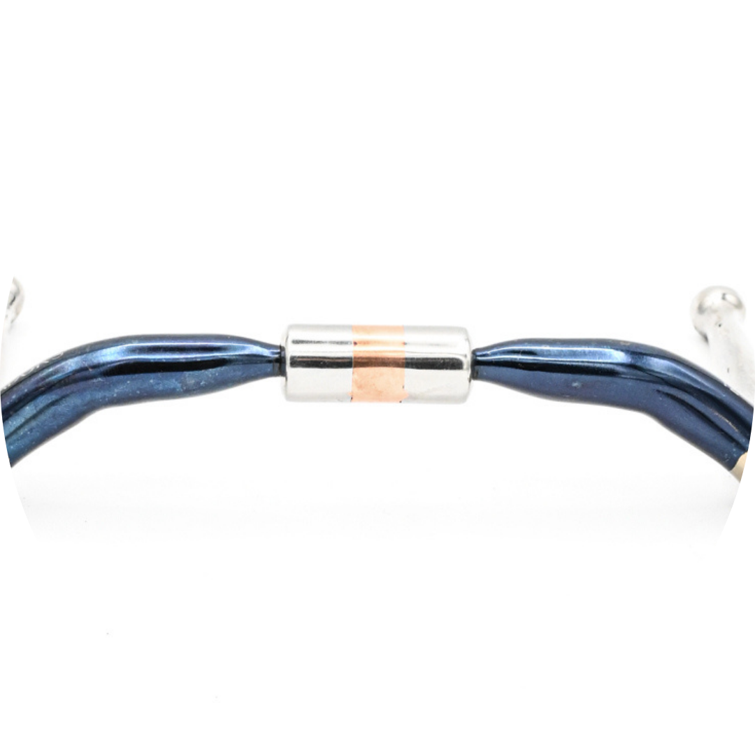While the regular CalmBlue mouthpiece has a copper roller on the barrel to enhance acceptance and communication this bit is an adapted version where the copper is set and not rolling to make the bit explicitly dressage legal.