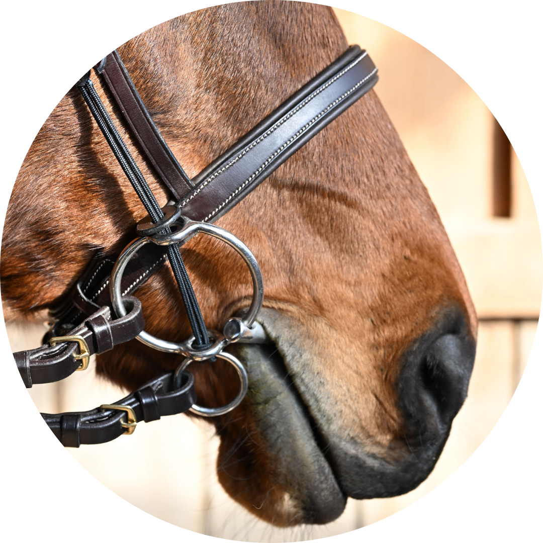 The gag cheekpiece delivers pressure on the poll and corners of the mouth by pulling through the gag rings on the bit which creates a leverage effect.