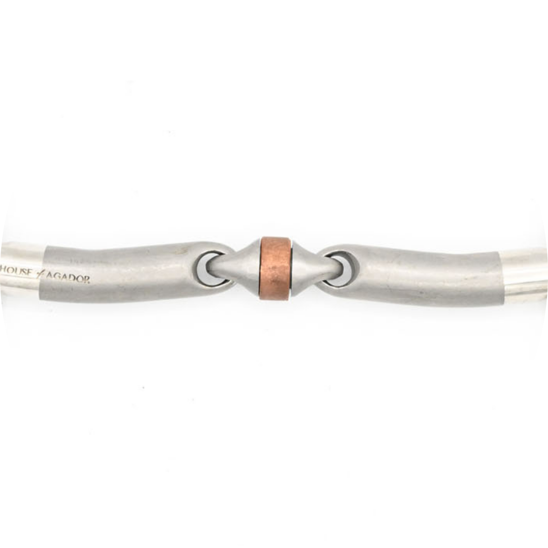 The loose ring, eggbutt, elevator and gag bits of this line can be used “upside down” to provide mild bar relief and give you a hint whether your horse prefers more pressure to be directed towards the center or the side of the tongue above bars.